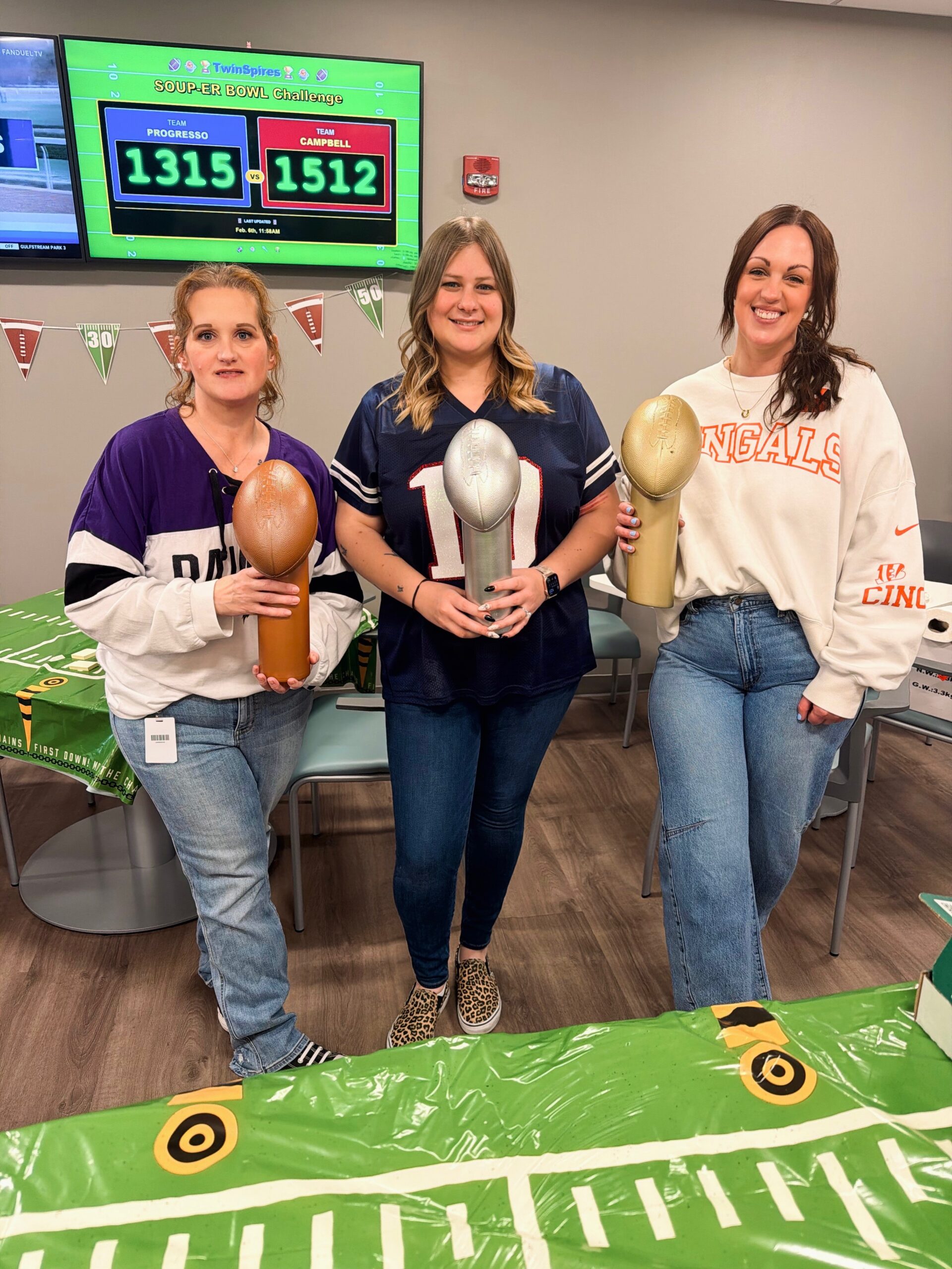 LOUISVILLE, Ky., (February 6, 2025)— TwinSpires concluded its annual “Soup-er Bowl” challenge, raising a total of 2,827 cans of soup for Catholic Charities of Louisville. Team Campbell led the effort with 1,512 cans, while Team Progresso contributed an impressive 1,315 cans, demonstrating the generosity and community spirit of our team members.