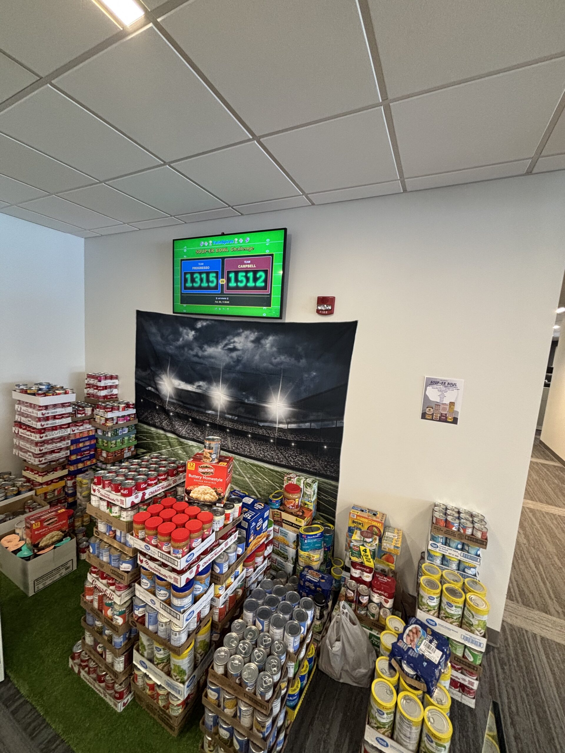 Designed as a two-week, football-themed friendly competition, the initiative began with a “Draft Day,” where employees were assigned to teams and introduced to their coaches. A live scoreboard displayed throughout the office helped build momentum and engagement. The kickoff coincided with National Fun Day at Work, featuring football trivia, team jerseys, and shared tailgate-style snacks. The challenge concluded with a spirited soup cook-off, where employees showcased their culinary talents, winners were awarded trophies, and participants donned their favorite team gear to celebrate a successful campaign in support of our local community.